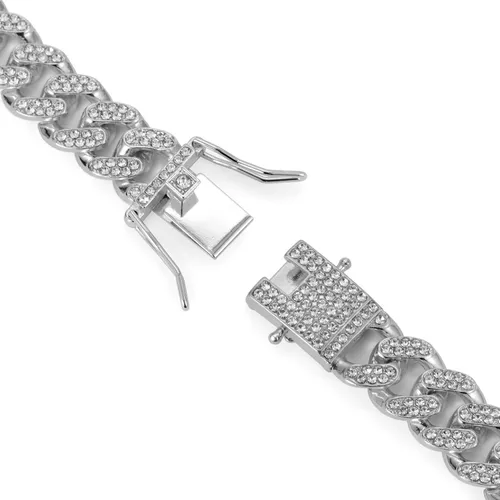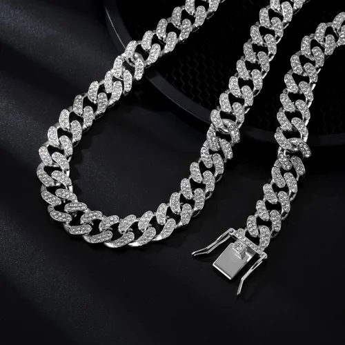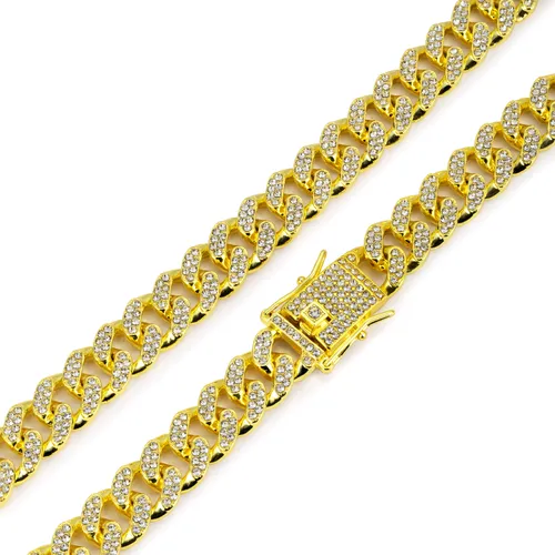 This classic 13mm Cuban chain is fully iced out with sparkling diamonds and finished in your choice of luxury gold or silver plating. Designed for both men and women, it’s the perfect accessory to elevate your outfit – whether for parties, music events, weddings, or daily street style.